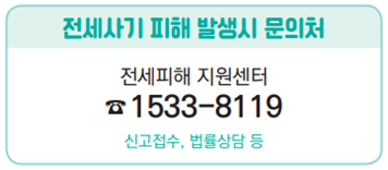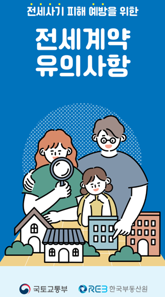 전세계약 유의사항 담당부서주택임대차지원팀 담당자전재한 전화번호044-201-4178 등록일2023-01-13 조회20088 분류주택토지 > 주택정책 첨부파일전세계약 유의사항 리플렛.pdf 전세계약 유의사항을
